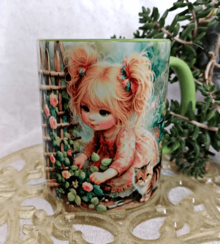 Sevimli bahçıvan vintage baskı büyük boy kupa