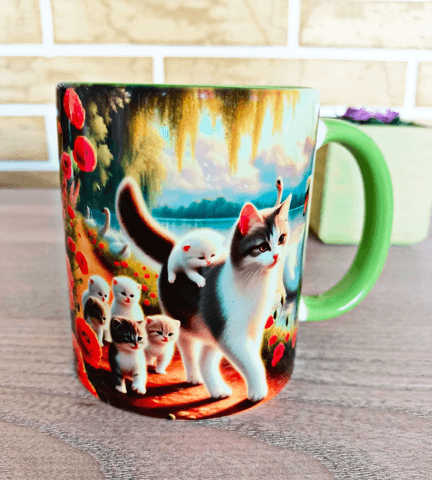 Sevimli kedi vintage baskı büyük boy porselen kupa