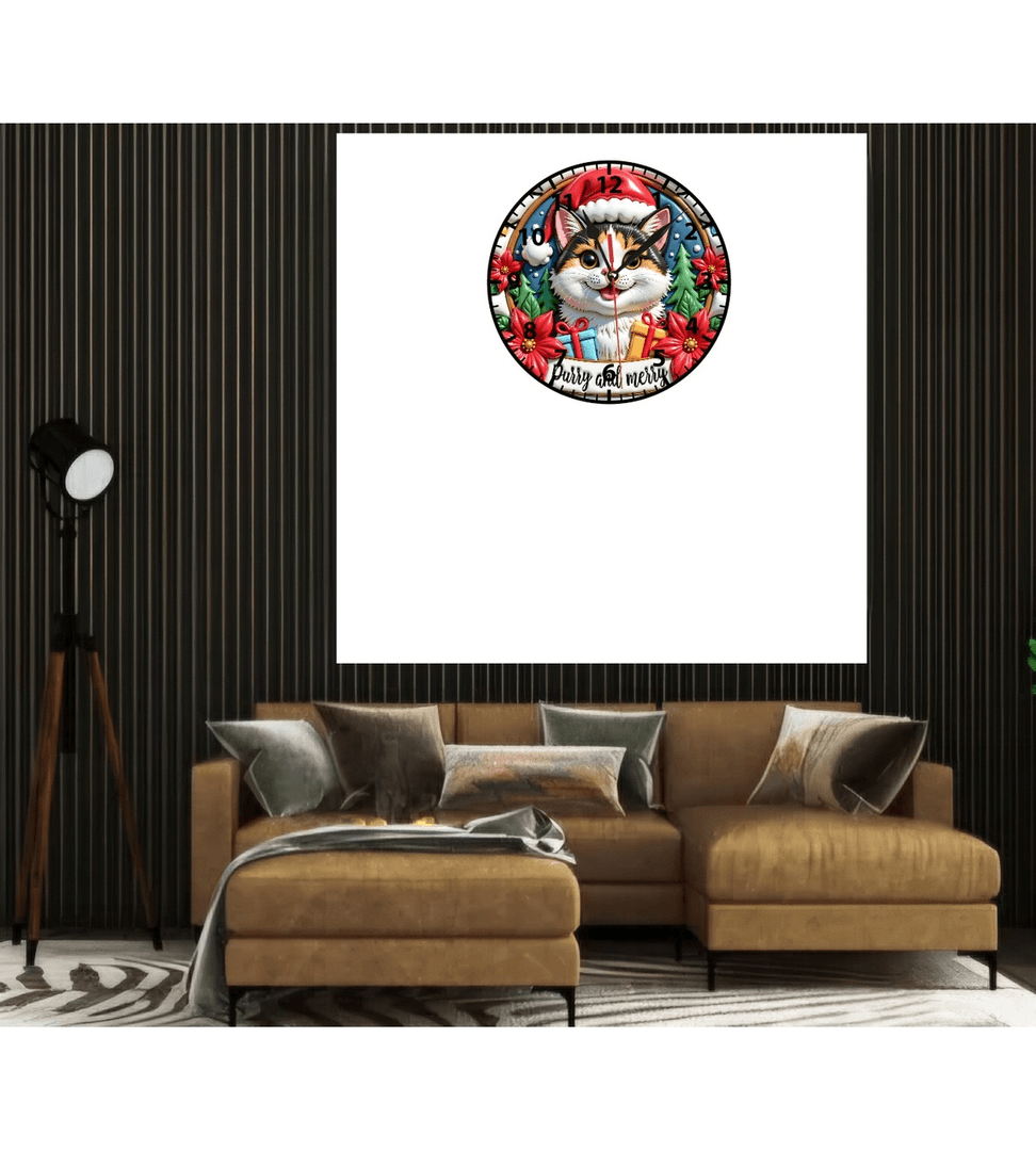 Sevimli kedi yılbaşı christmas noel baskı metal duvar saati hediyelik ev dekorasyon