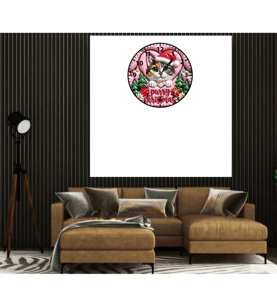 Sevimli kedi yılbaşı noel christmas baskı metal duvar saati hediyelik ev dekorasyon