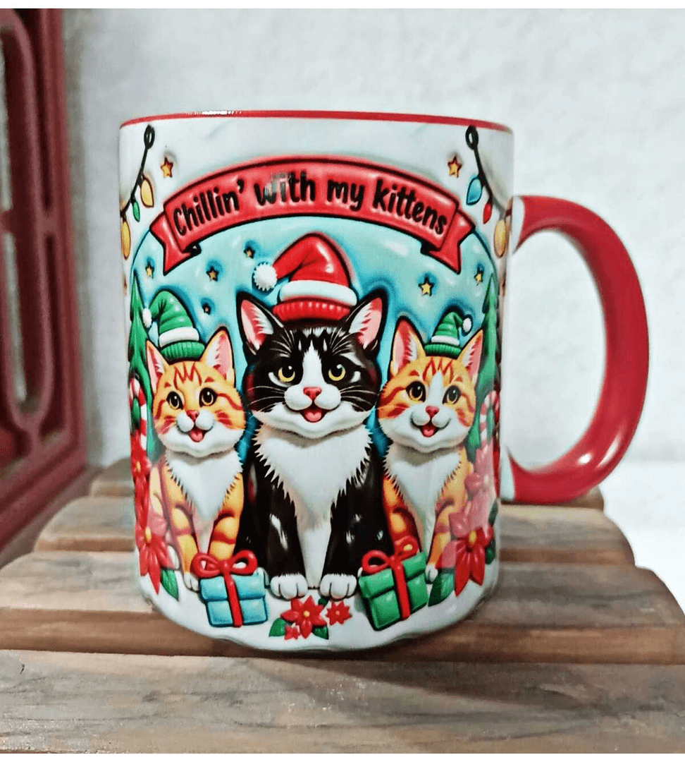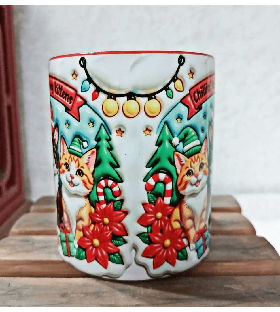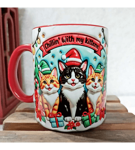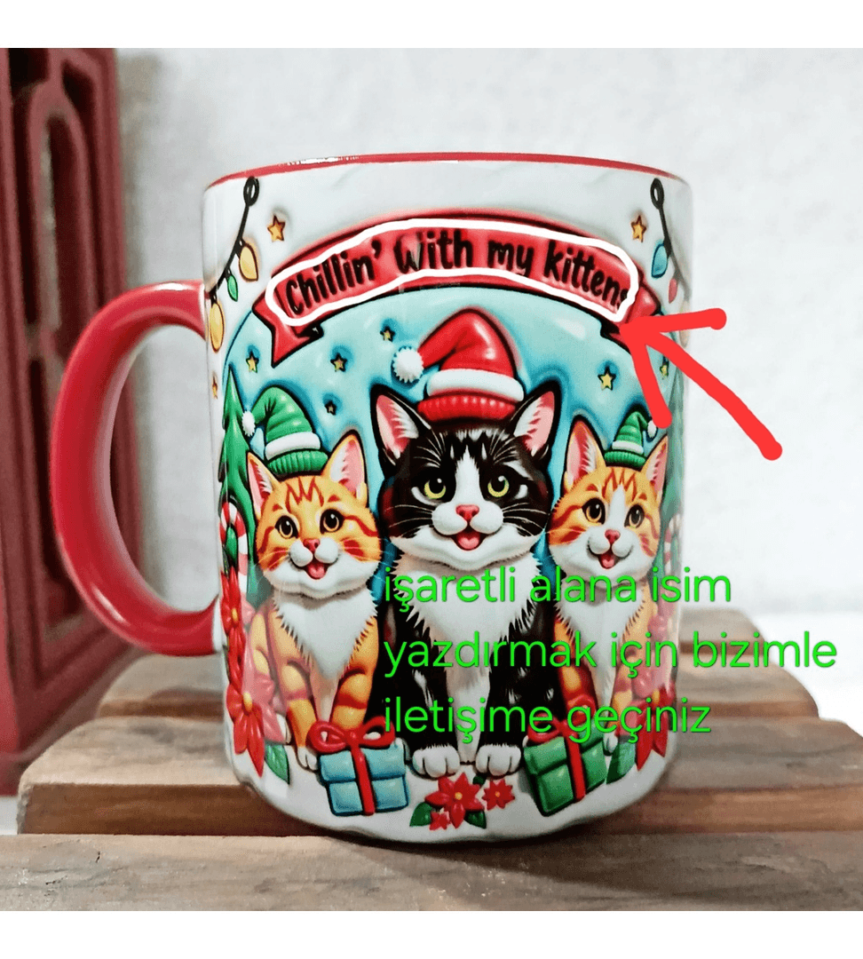 Sevimli Kediler Yılbaşı Kişiselleştirilebilir Porselen Kupa