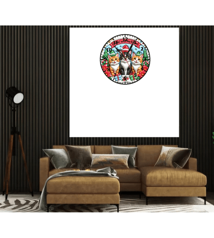 Sevimli kediler yılbaşı noel christmas baskı metal duvar saati hediyelik ev dekorasyon