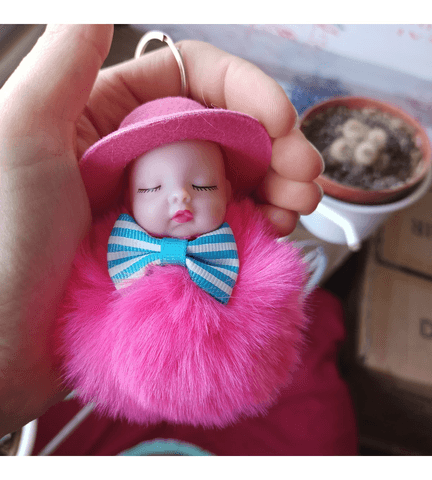 Sevimli ponpon açık pembe şapkalı bebek anahtarlık çanta aksesuarı