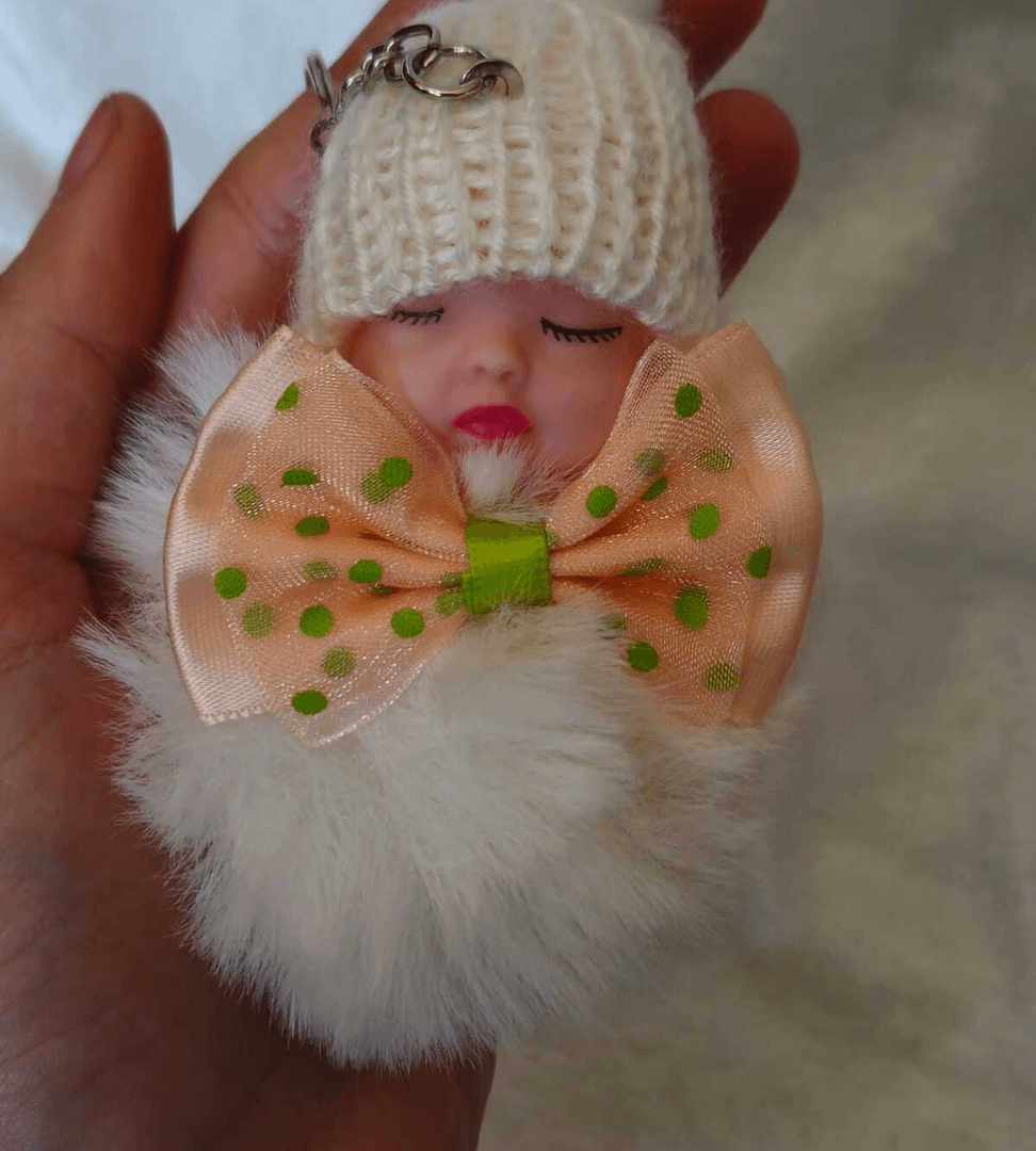 Sevimli ponpon bebek beyaz anahtarlık çanta aksesuarı