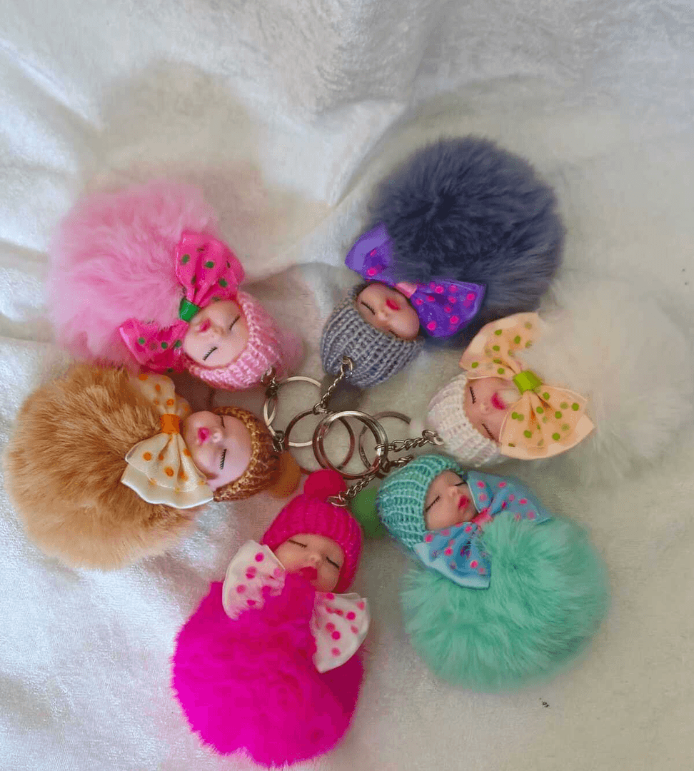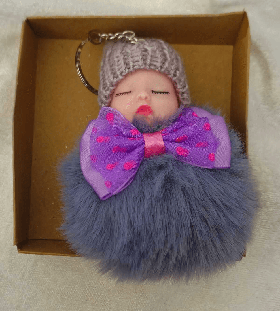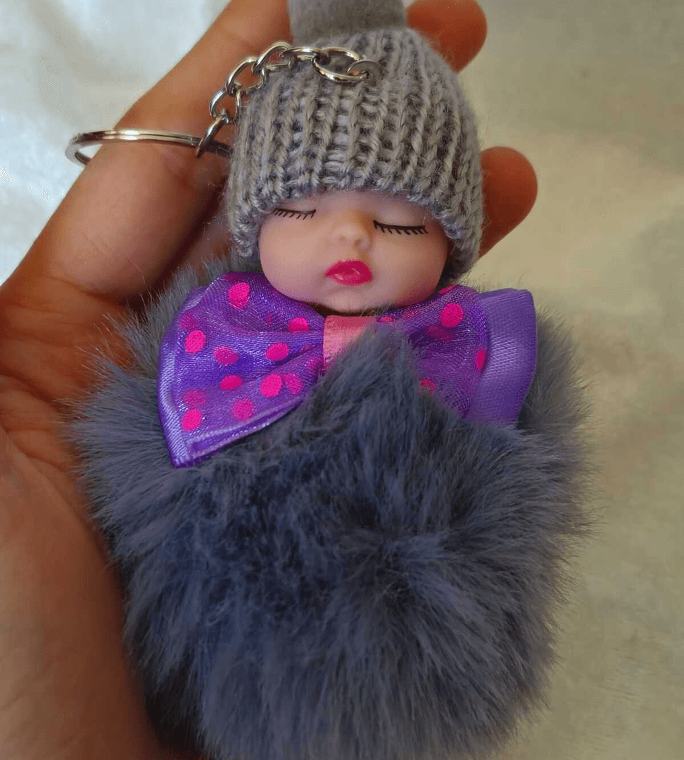 Sevimli ponpon bebek gri anahtarlık çanta aksesuarı