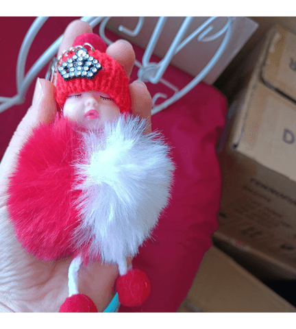 Sevimli ponpon bebek kırmızı anahtarlık çanta aksesuarı