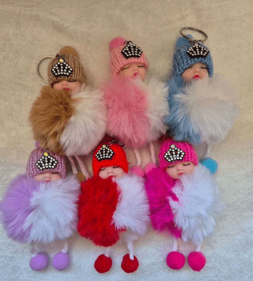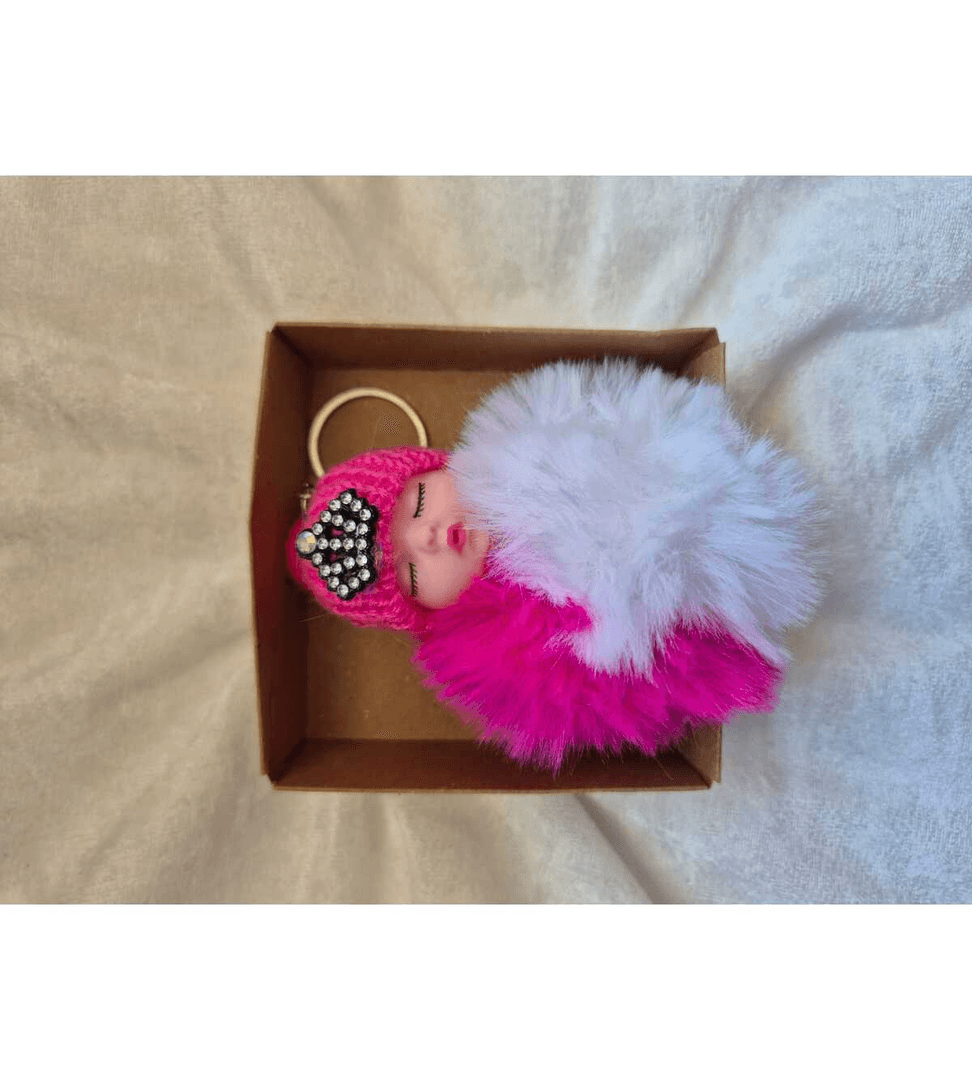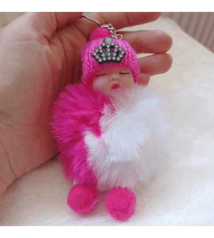 Sevimli ponpon bebek koyu pembe anahtarlık çanta aksesuarı