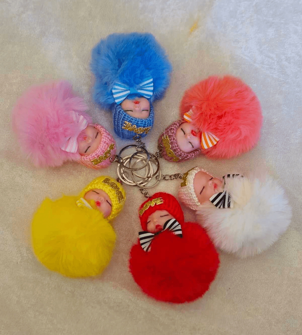 Sevimli ponpon bebek mercan anahtarlık çanta aksesuarı
