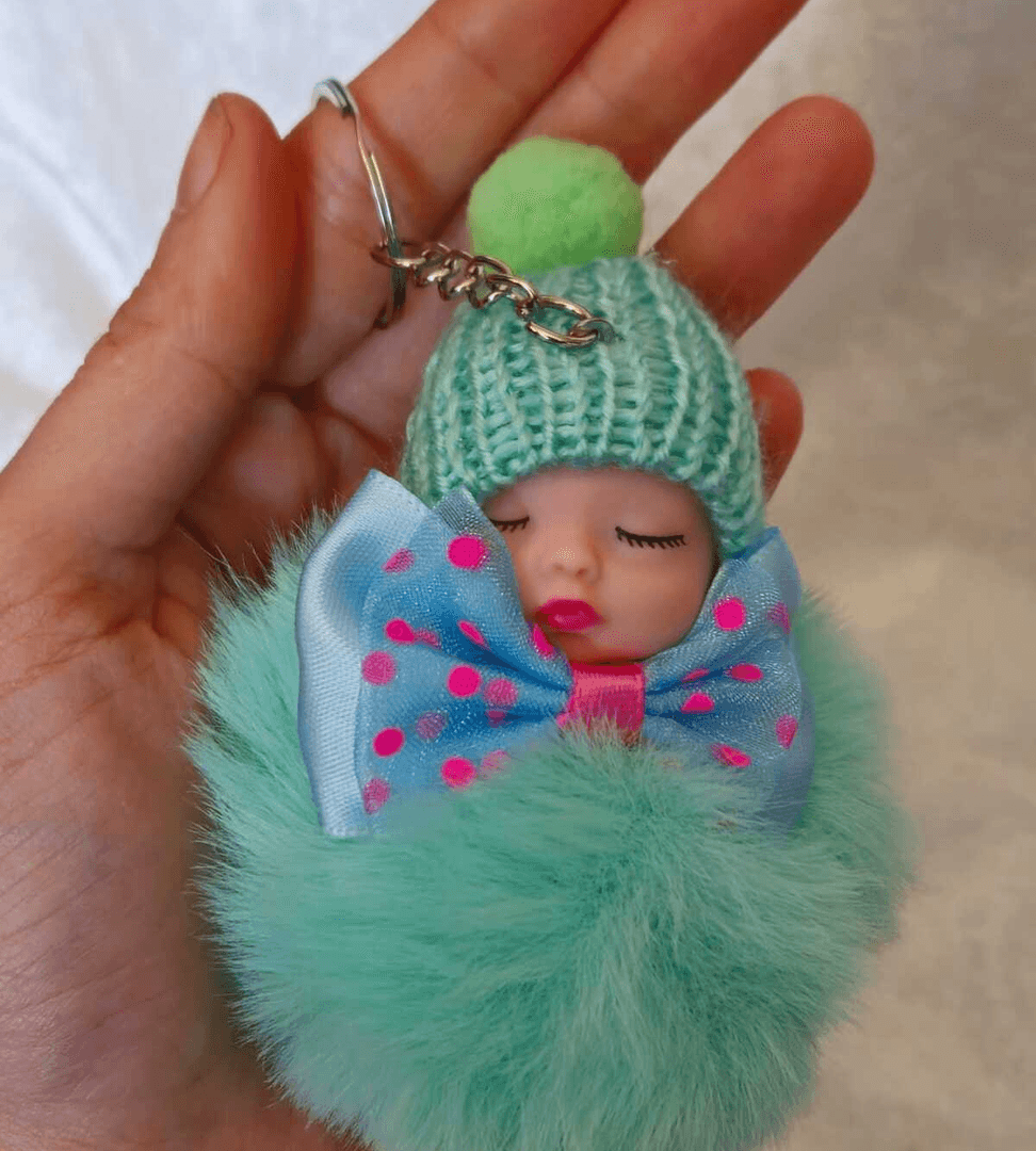 Sevimli ponpon bebek yeşil anahtarlık çanta aksesuarı
