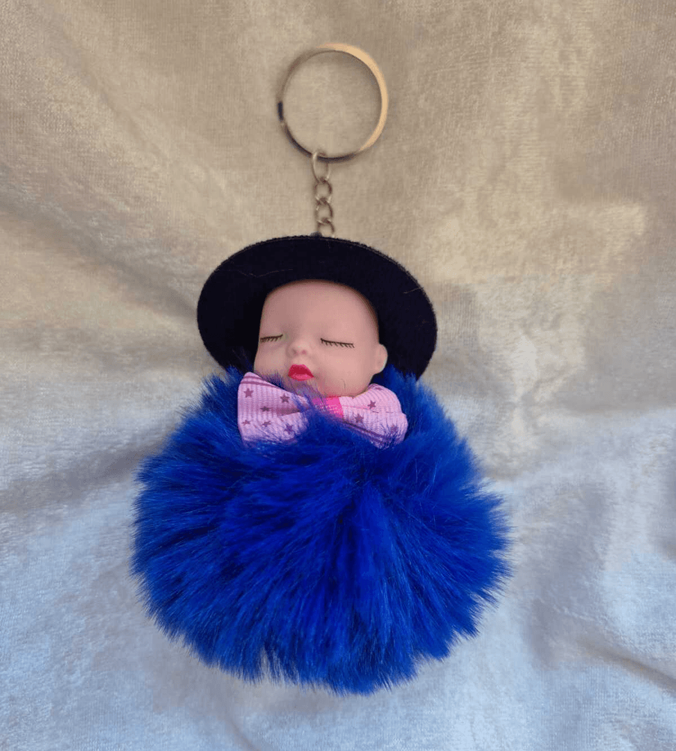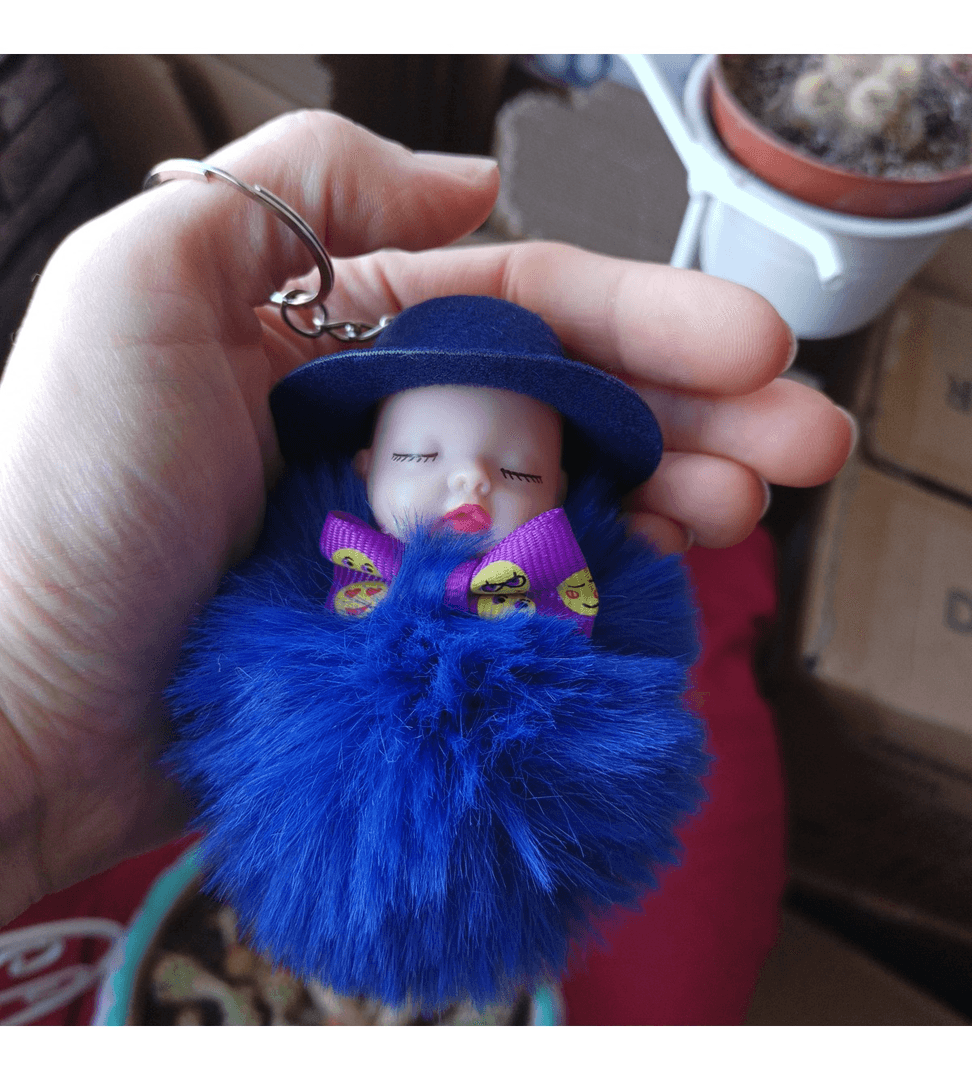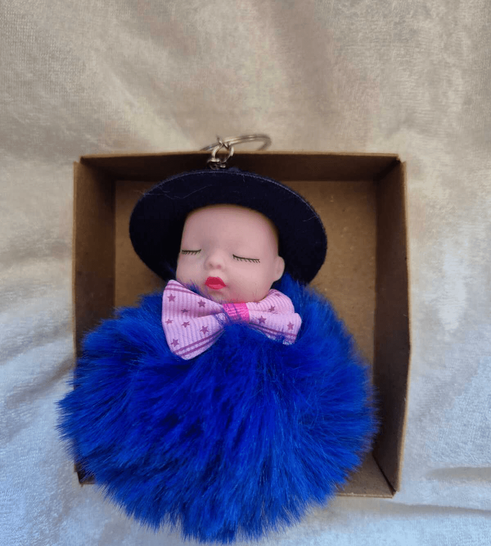 Sevimli ponpon lacivert şapkalı bebek anahtarlık çanta aksesuarı