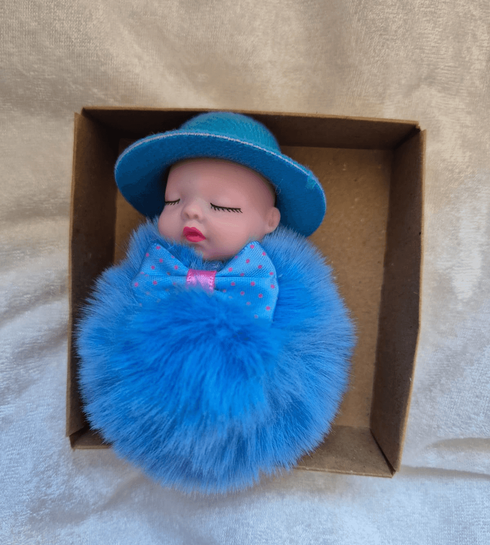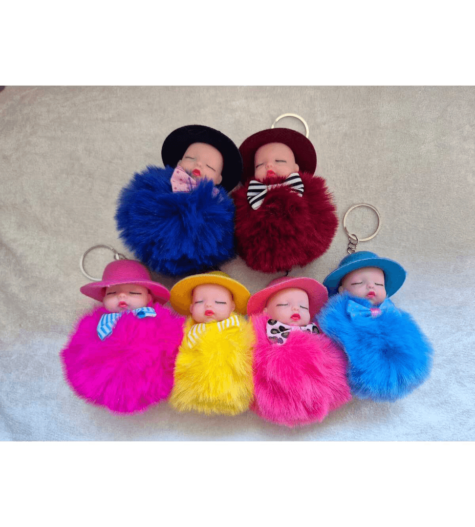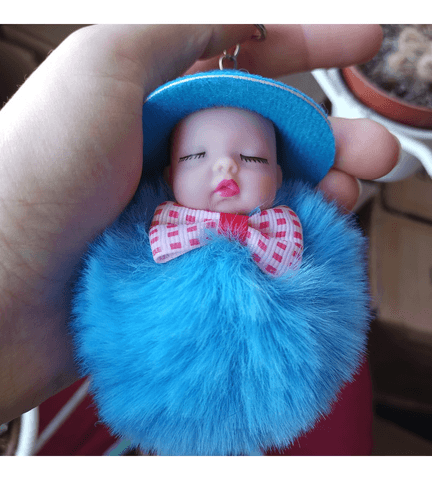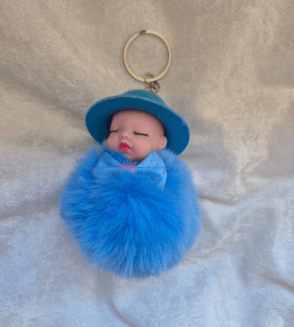 Sevimli ponpon mavi şapkalı bebek anahtarlık çanta aksesuarı
