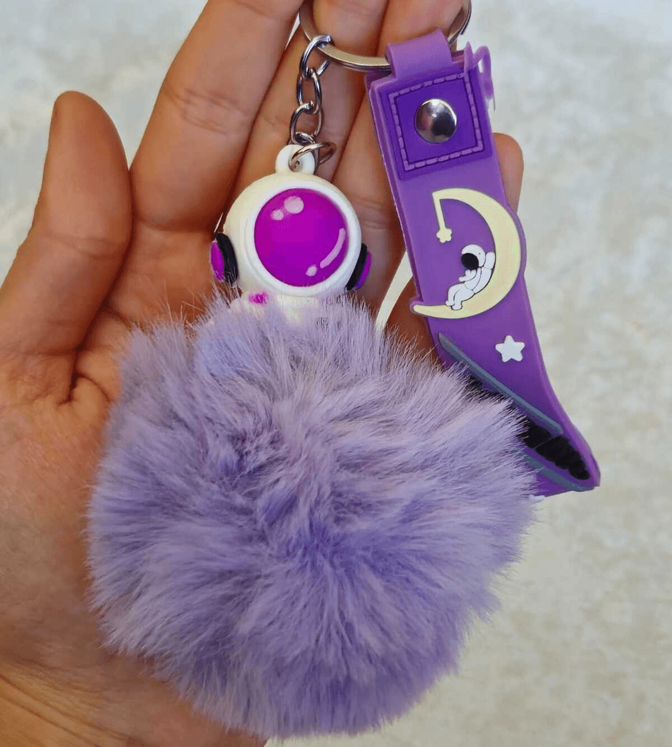 Sevimli ponpon mor astronot anahtarlık çanta aksesuarı