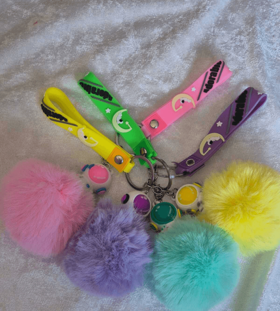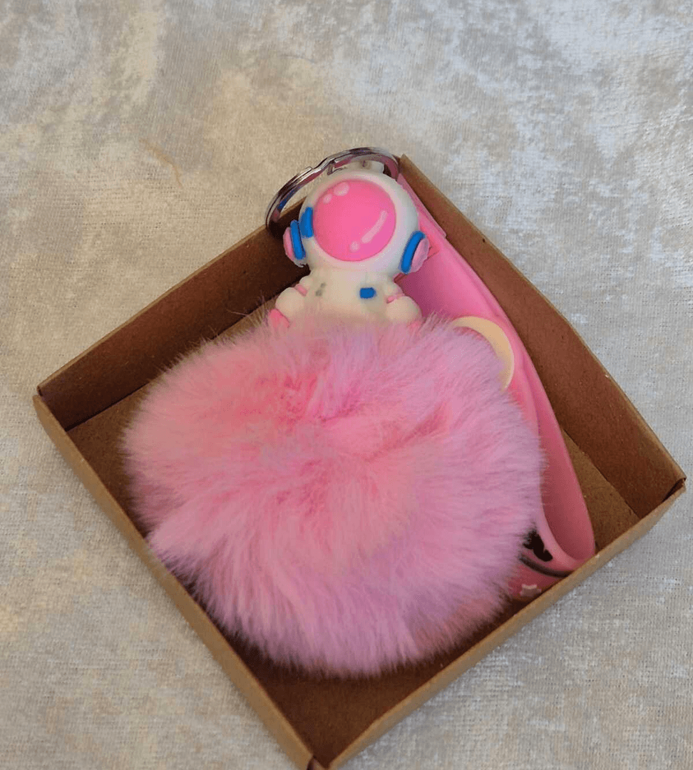 Sevimli ponpon pembe astronot anahtarlık çanta aksesuarı