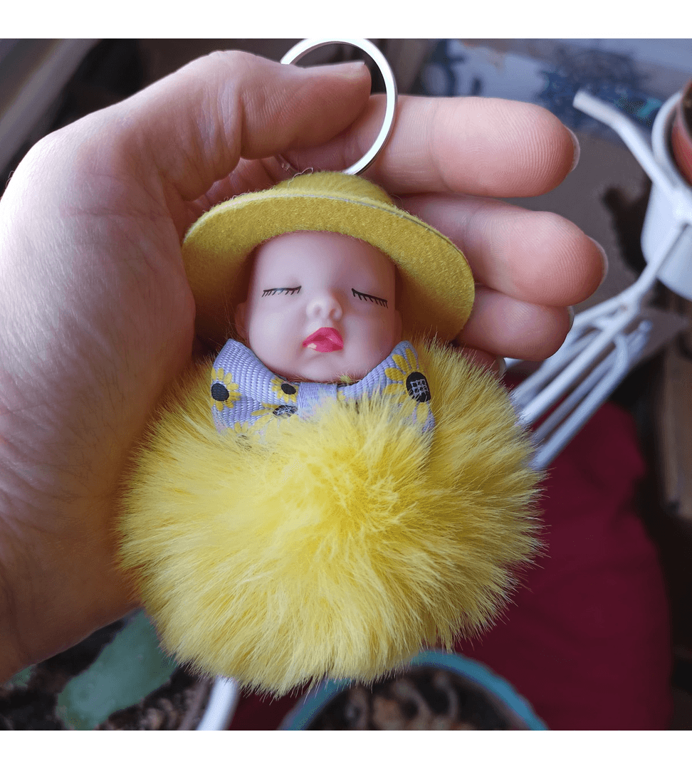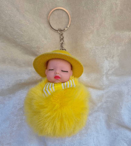 Sevimli ponpon sarı şapkalı bebek anahtarlık çanta aksesuarı
