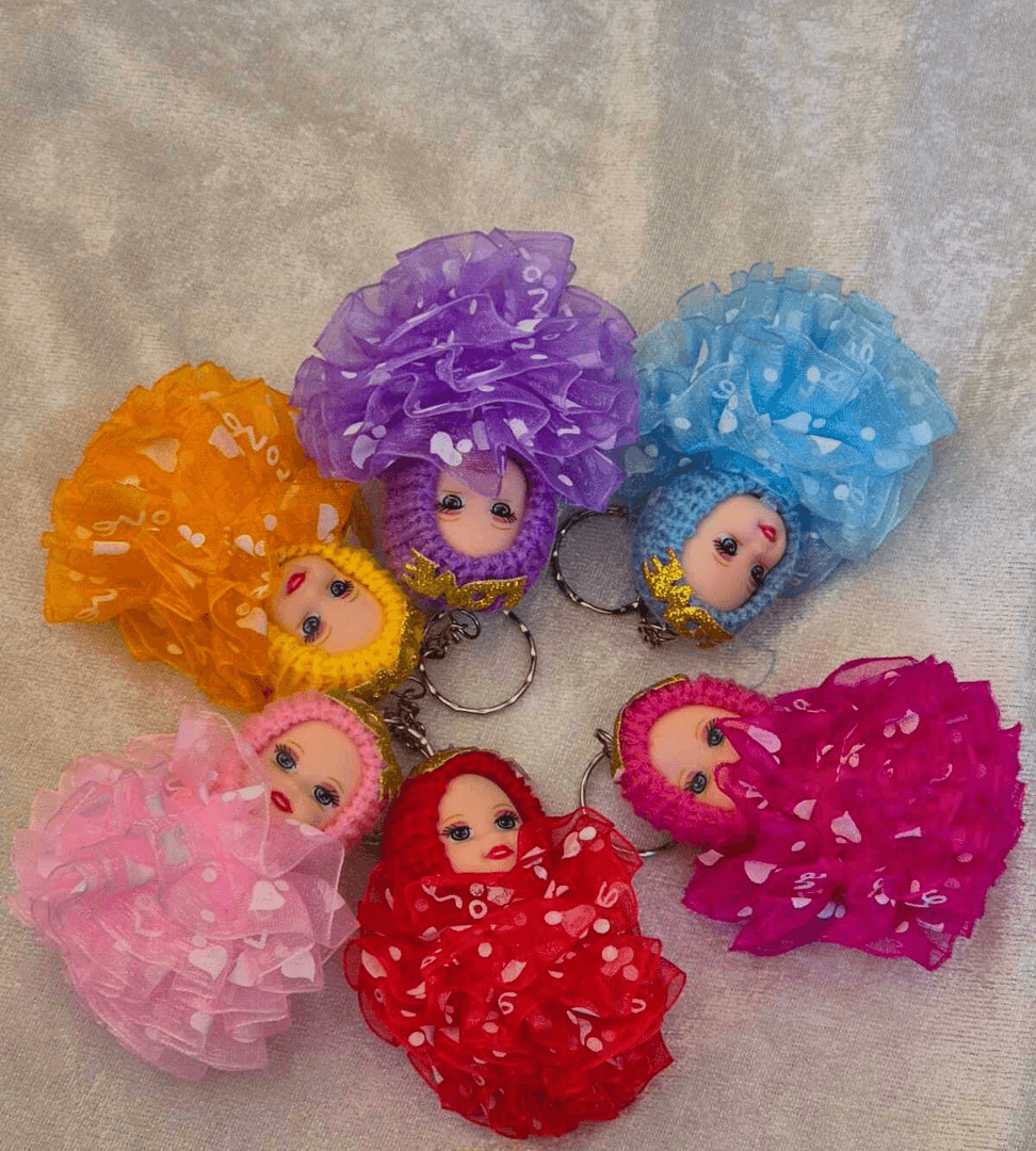 silikon tüllü mor bebek lüks anahtarlık çanta aksesuar