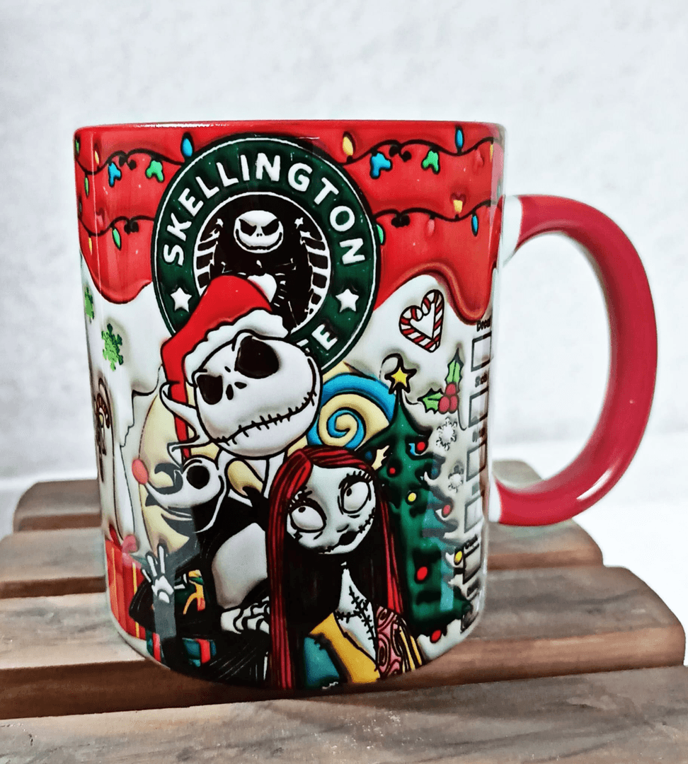 Skellington Noel yılbaşı Baskı içi ve Kulpu Renkli Kupa