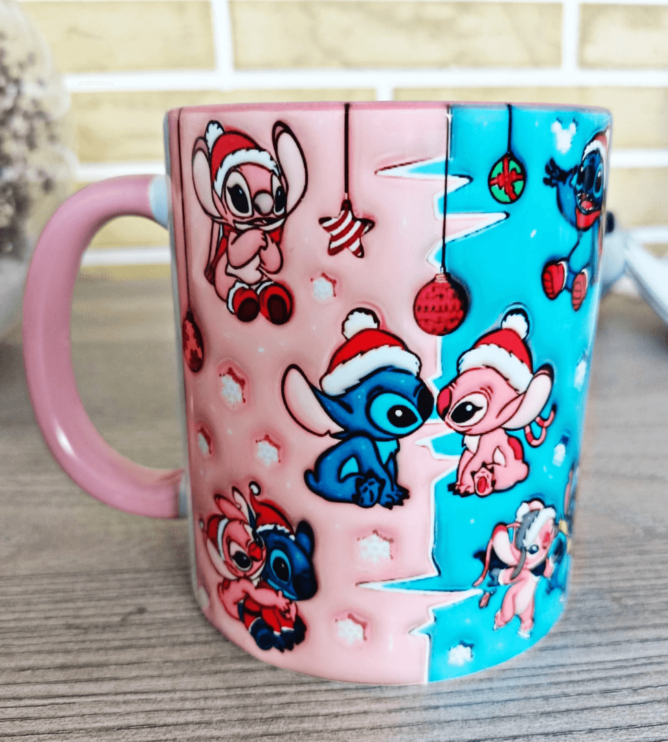 Stitch Noel yılbaşı Baskı içi ve Kulpu Renkli Kupa
