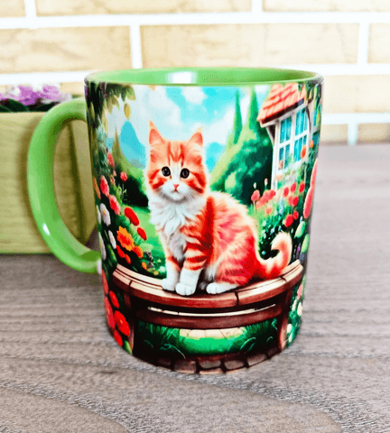 Sevimli kedi vintage baskı büyük boy porselen kupa